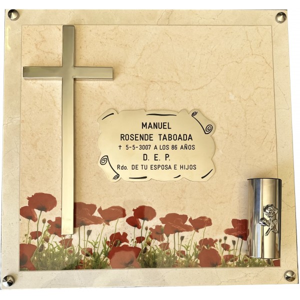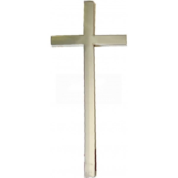Cruz de acero inoxidable, con adhesivo en su parte posterior, apta para colocar en lápidas, columbarios, panteones, especialmente indicada para cemeterios.