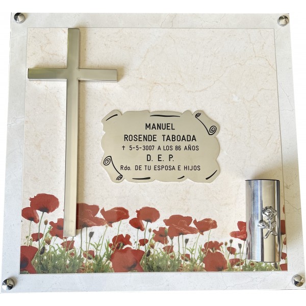 Cruz de acero inoxidable, con adhesivo en su parte posterior, apta para colocar en lápidas, columbarios, panteones, especialmente indicada para cemeterios.